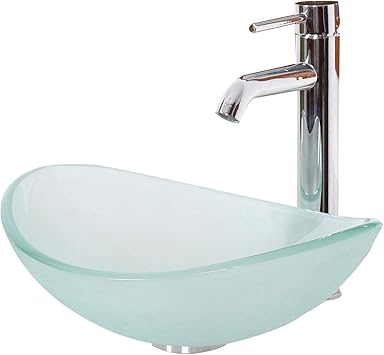 Elite Unique Oval Frosted Tempered Bathroom Glass Vessel Sink Chrome Single Lever Faucet Combo Amazon Com