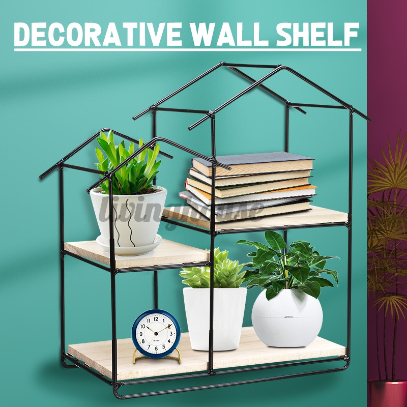 Wall Mounted Wooden Metal Floating Shelf Storage Display Rack House Home Shaped Shopee Indonesia