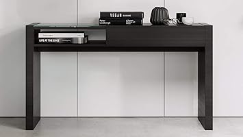 Amazon Com Zuri Etta Black Oak Modern Console Table With Drawer And Glass Shelf Furniture Decor