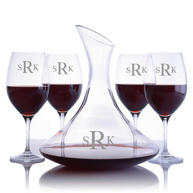 Check out our wine decanter sets selection for the very best in unique or custom handmade pieces from our decanters shops. Wine decanter with a rubberwood ball engraved with be mine and four stemless wine glasses each engraved with a charming phrase. Buy top selling products like Luigi Bormioli Crescendo 68 oz.