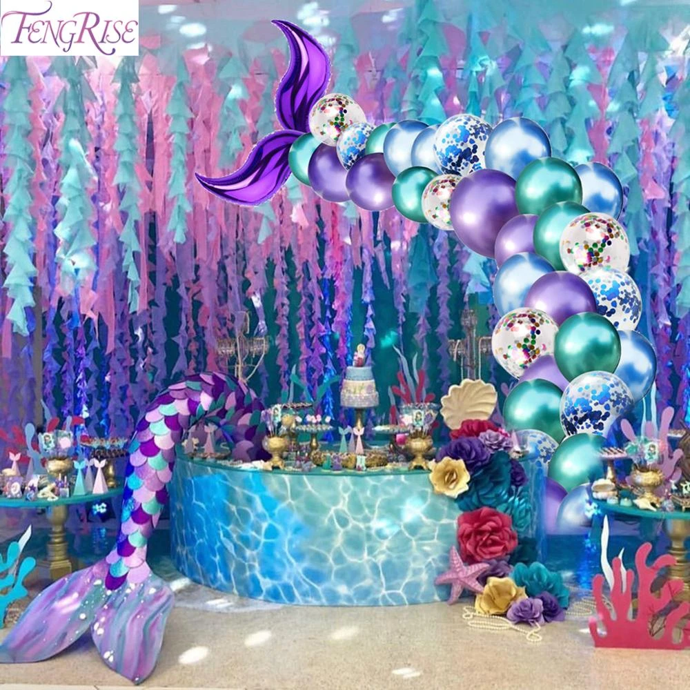 Fengrise 44pcs Set Balloon Little Mermaid Theme Party Mermaid Decor Mermaid Birthday Decor For Kids Favor Birthday Wedding Party Party Diy Decorations Aliexpress