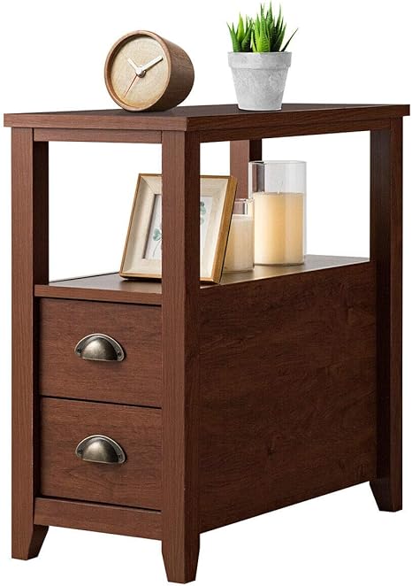 Amazon Com Topeakmart Chair Side End Table With 2 Drawers Narrow End Table For Small Spaces Sofa Chair Couch Console Accent Tables For Living Room Set Of 2 Furniture Decor