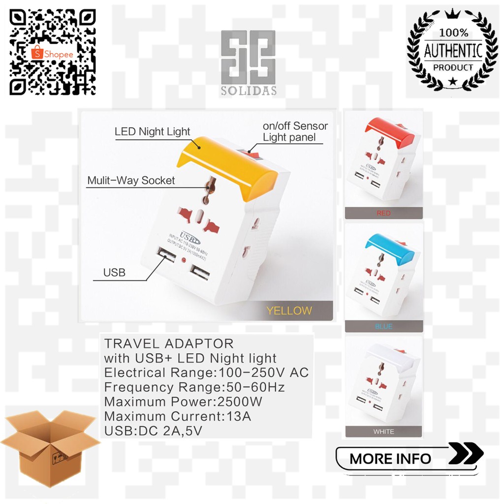 Solidas Night Light And Travel Adaptor With Usb Port Shopee Indonesia