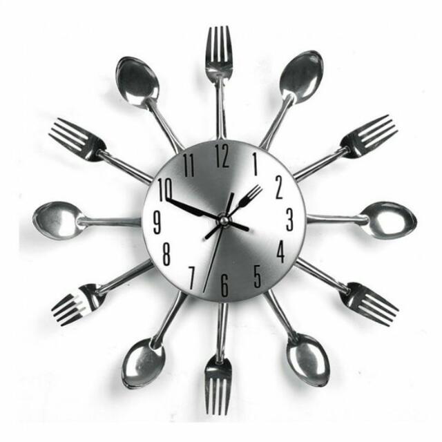 Kitchen Utensil Forks Spoons Wall Clock Home Decor Idea Clock Wall Decor Stainless Steel Kitchen Decor Kitchen Wall Clocks