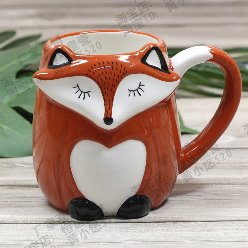 500ml Lucu Hewan 3d Fox Cangkir Kopi Kapasitas Besar Tangan Dicat Kartun Keramik Sarapan Mug Susu Gratis Pengiriman Mug Aliexpress