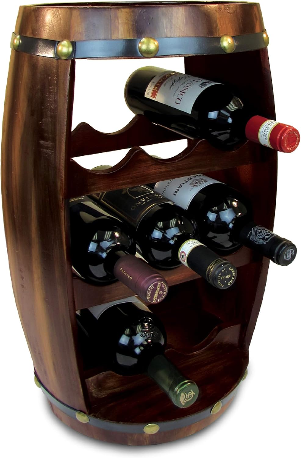 Amazon Com Puzzled Alexander Wine Rack Freestanding Wooden Barrel Wine Holder For 8 Wine Bottles Decorative Bottle Rack Floor Stand Rustic Countertop Wine Storage Shelf Organizer For Wine Bar Home Decor
