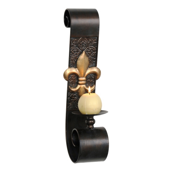Vintage Brass Fleur De Lis Wall Sconce Candlestick Holder ThePeoplePotsCo. Add to Favorites Vintage Metal Candle Holder Sconce Black and Bronze Fleur de Lis Style Pillar size candles JoyfulMoonDesigns 5 out of 5 stars. If you can hang it above the foyer console it will be even perfect.