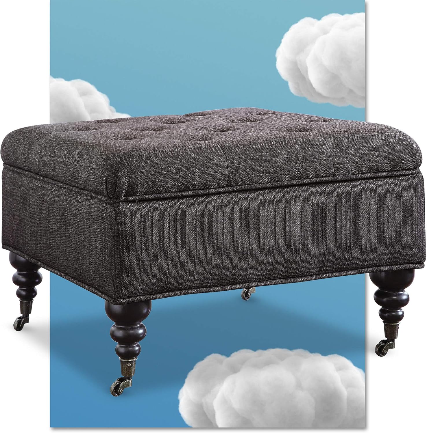 Amazon Com Serta Abbot Square Tufted Ottoman With Storage Space Built In Casters Compact Size With Hinged Lid Tool Free Assembly Fabric Upholstery Charcoal Gray Furniture Decor
