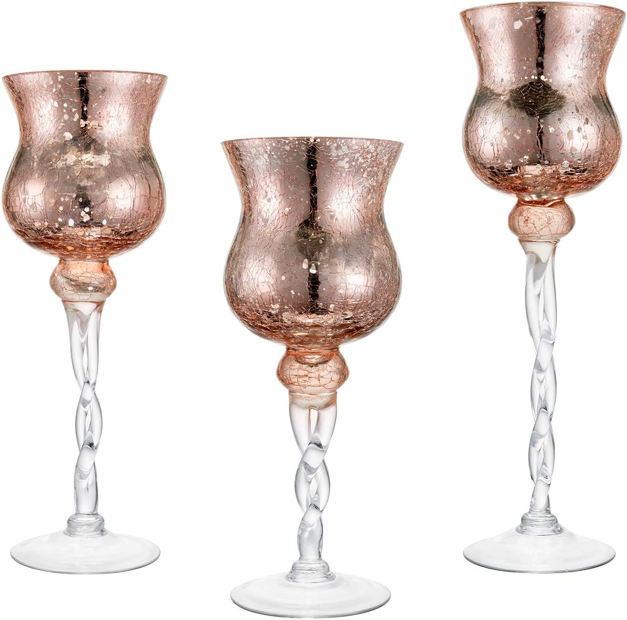 Amazon Com Diamond Star Pink Mercury Crackle Glass Long Stem Tealight Candle Holders Centerpieces For Wedding Table Set Of 3 12 14 15 5 Tall Home Kitchen
