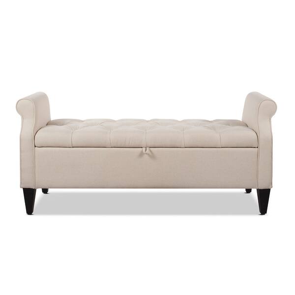 Beige Tufted Rolled Arm Bench Upholstered Storage Bench Furniture Tufted Storage Bench