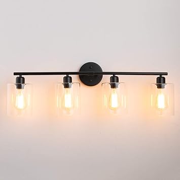 4 Light Industrial Bathroom Vanity Light Hardwire Industrial Glass Wall Sconce Vintage Edison Black Bathroom Lighting Fixture Exclude Bulb Amazon Com