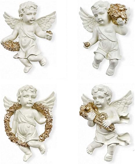Amazon Com Cheng Wall Sculptures Angel 4 Piece Set Wall Decoration Home Decoration Small Angel Living Room Wall Decoration Pendant Creative Resin Wall Hanging Decorations Design Statues Decor Walls Ornament Home Kitchen