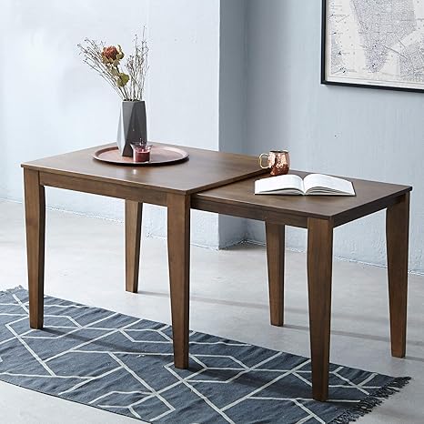 Amazon Com Livinia Expandable Dining Table Solid Hardwood Extending Table Rise 35 To 59 Rectangular Kitchen Table For 2 To 4 Leisure Desk For Kitchen Dining Living Room Apartment Walnut Home Kitchen