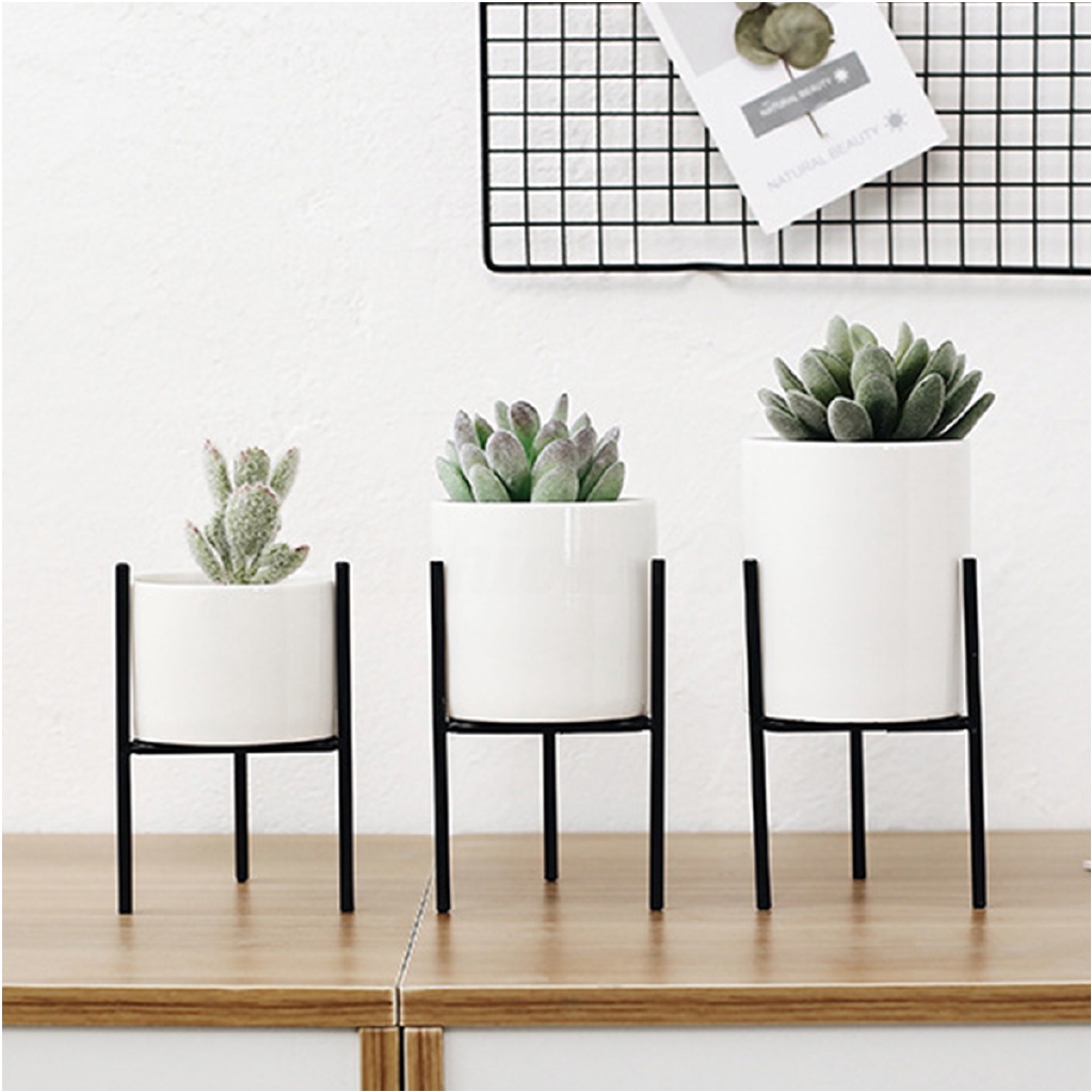 Ceramic Flower Pot Metal Rack Plant Pot Display Holder Stand Home Garden Decor Shopee Indonesia